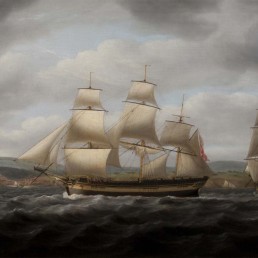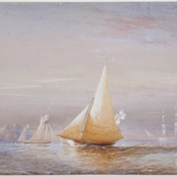 Depicts the cutter BRAMBLE with the RATTLESNAKE at rest in the distance